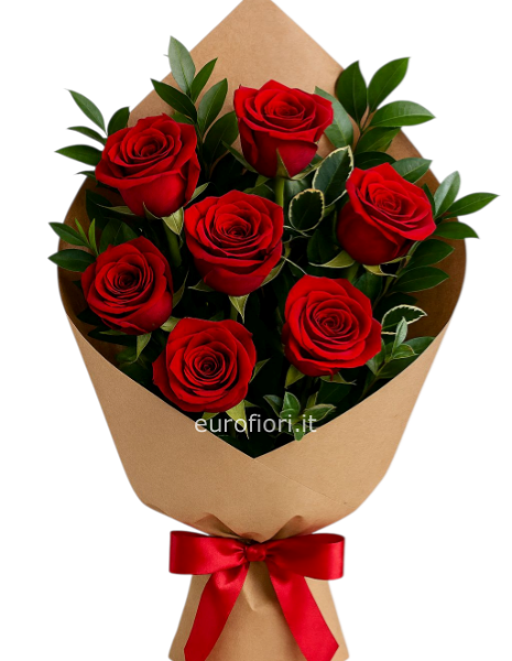 Mazzo di 7 rose rosse gambo medio
