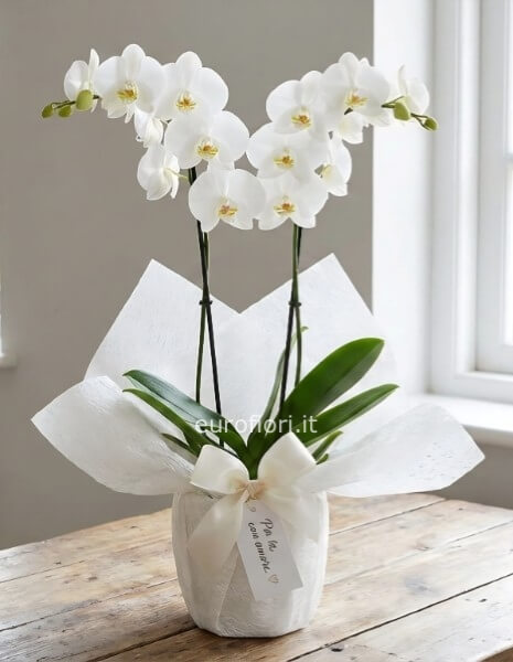 / Pianta orchidea phalenopsis bianca a 2 rami